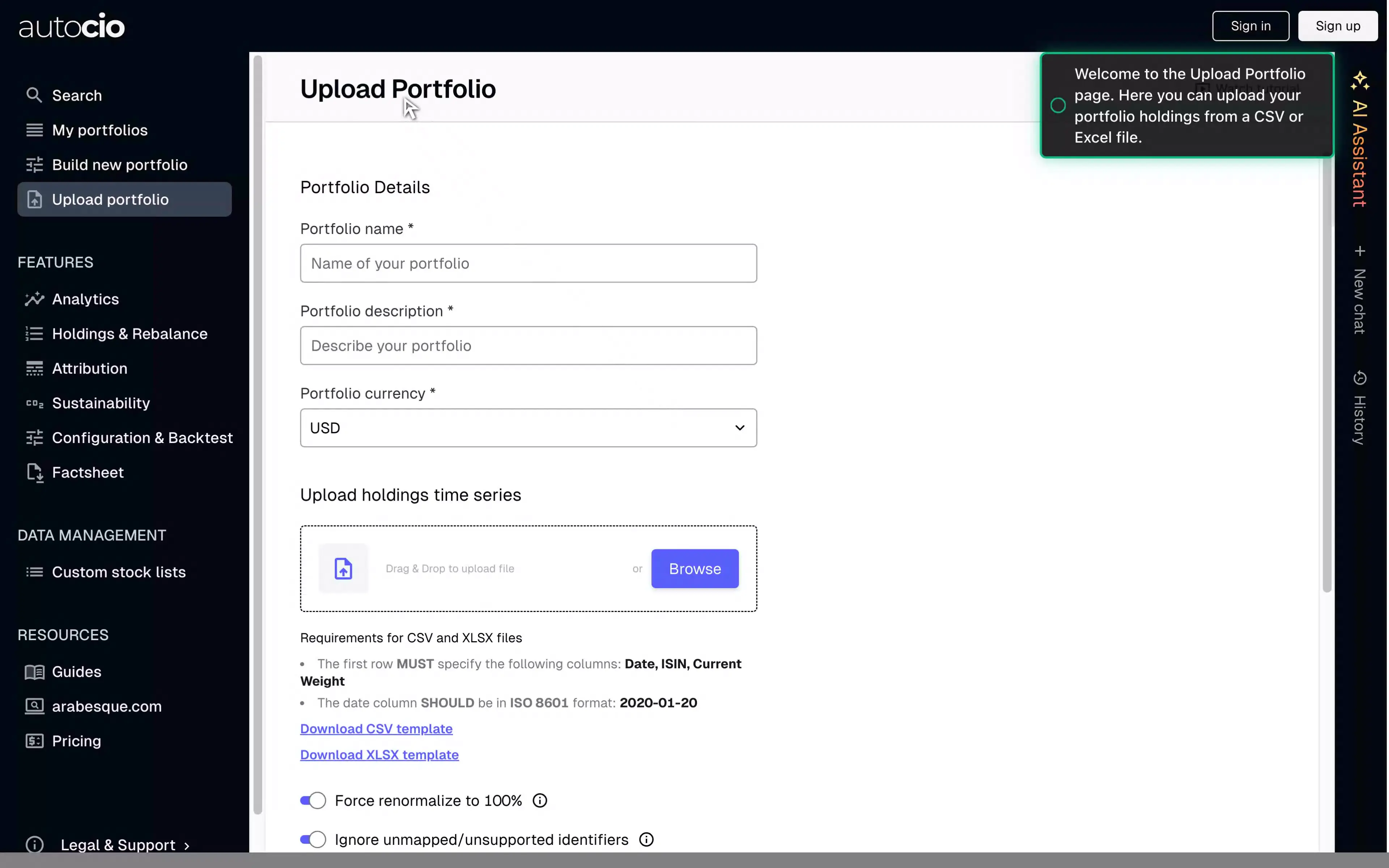 Import your existing portfolios for analysis and optimization