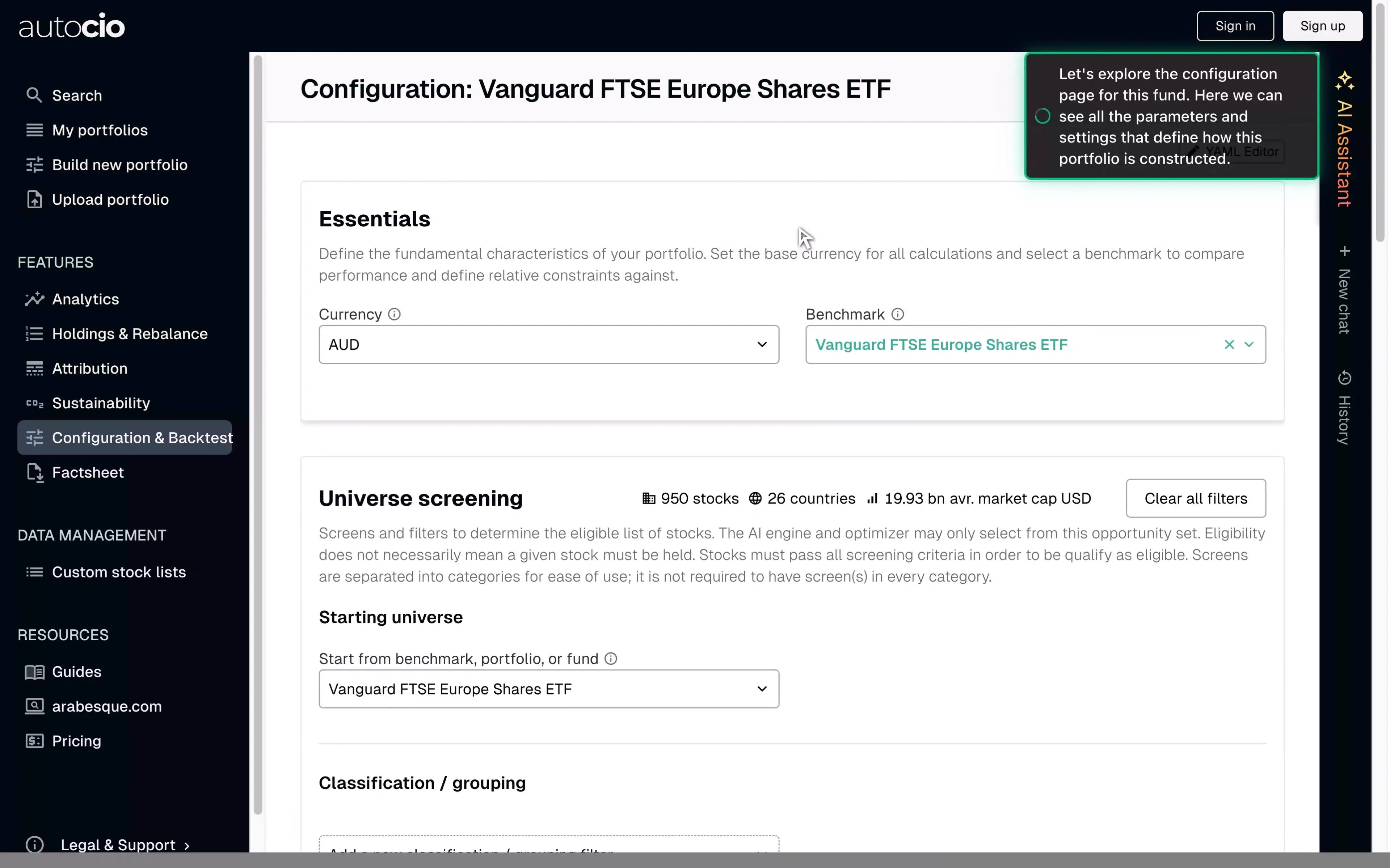 Configure portfolio settings and optimization parameters